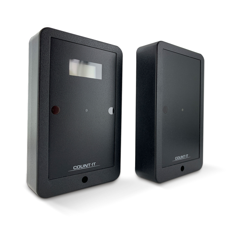 The COUNT IT People Counter is a bi-directional people counter set. The principle is based on the interruption of a horizontal infrared beam. The transmitter transmits the infrared beam to the receiver. When this infrared beam is interrupted, eg. by a person, the receiver detects this and will increase the count value on the display. Users can choose which count direction is displayed. Because of the innovative use of electronics, the counter can run for approximately 1 year on one set of batteries, without compromising the counting distance.